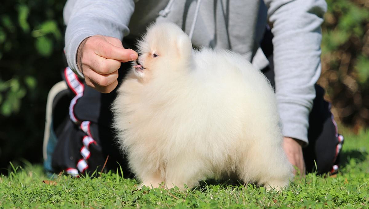 גור נדיר בעל תעודות יוחסין של FCI קווי דם מובילים לגזע הפומרניאן בעל גוון לבן (ככה גם מופיע בתועדת היוחסין) פרווה שופעת, מבנה ראש מושלם, אף פחוס בדיוק לפי תקן הגזע (ממש לא שפיץ) למבינים ורציניים בלבד. כרגע בגיל 3 חודש. כרגע במשקל של 1.2 קילו ויגיע לכל היותר למשקל של 1.7 קילו גג בתור בוגר.