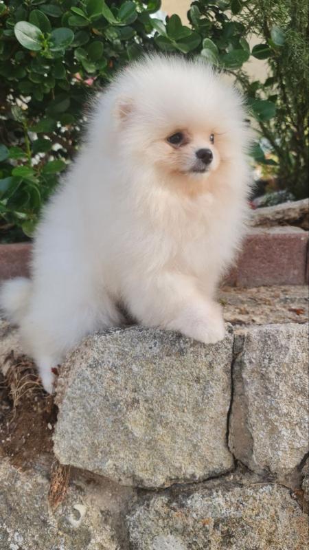 גור פומרניין צבע לבן קרם בן חודשיים וחצי לאחר חיסונים משושה ראשון וטיפול מונע נגד תולעים, עם פנקס חיסונים מסודר