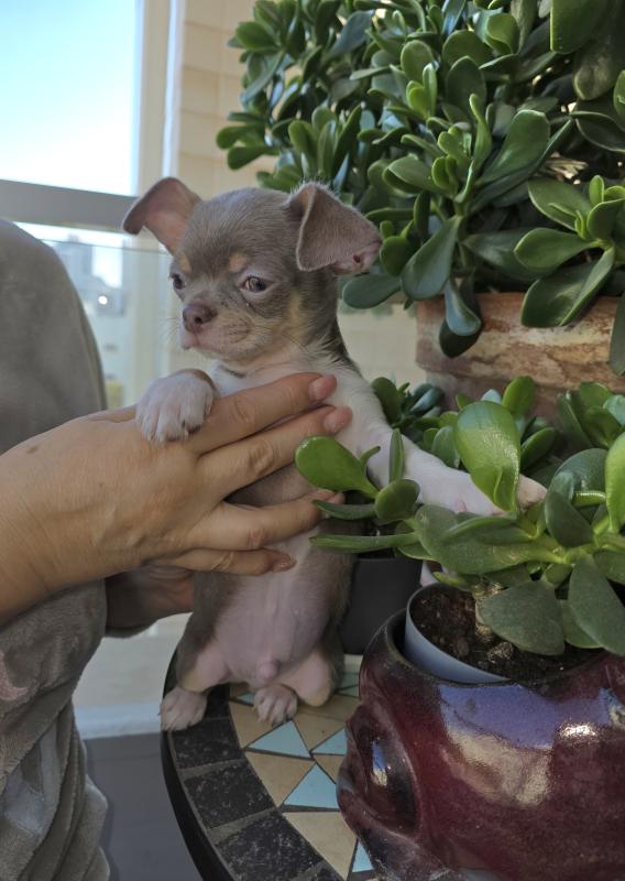 גור צ'וואווה ראש תפוח צבע נדיר ויפה בלו טאן . מתוק וחברותי אוהב לשחק בן חודשיים וחצי . לאחר בדיקה וטרינרית קיבל שני חיסונים משושה וטיפול מונע נגד תולעים , עם פנקס חיסונים מסודר. ההורים במקום. ט 0547559255