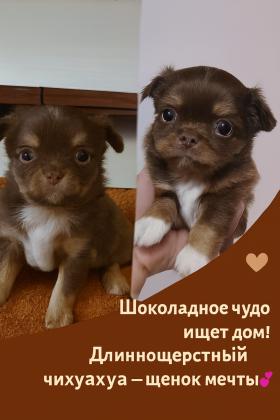גור צ'יוואווה ארוך שיער בצבע שוקולד. זכר. בחור יפה תואר.