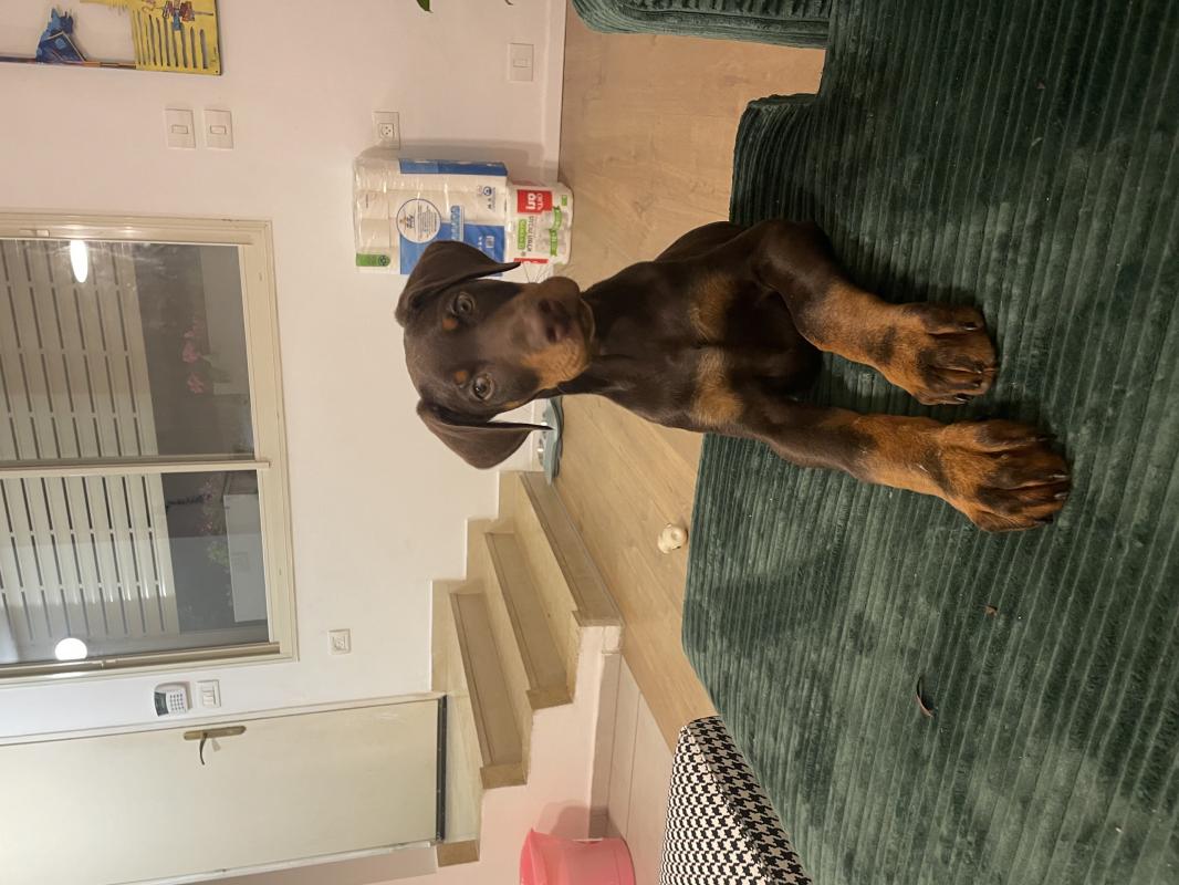 דוברמן גזעי זכר מושלם בין היפים שיש .נמכר עם מלונה איכותית ברמה גבוהה כולל חיסונים בן חודשיים וחצי