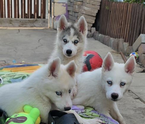 זכר ונקבה של האסקי סיבירי מוכנים לבית חם ואוהב