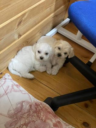 מלטז אמיתי אחרי בדיקת ויטרינר מקיפה חיסון ראשון ותילוע . צבע לבן המלטה ביתית אמא במקום.