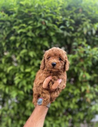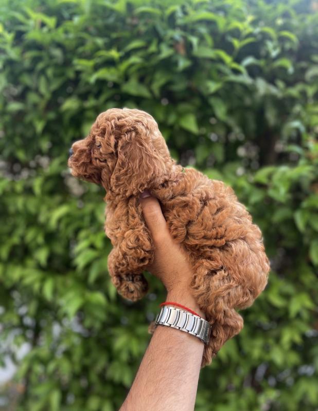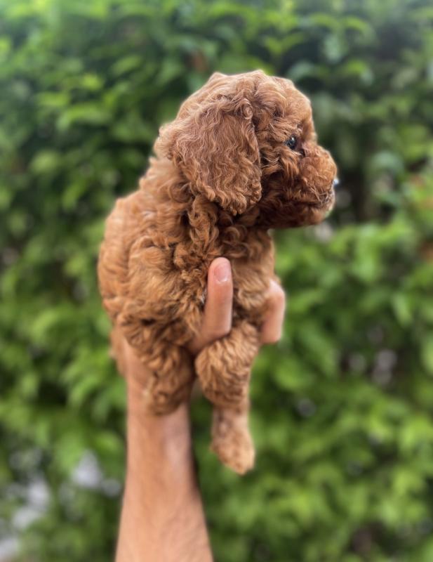 פודל טוי זכר מושלם בצבע חום אדום ללא כתמים. אחרי חיסון ראשון ובדיקת וטרינר מוכן לבית חדש
