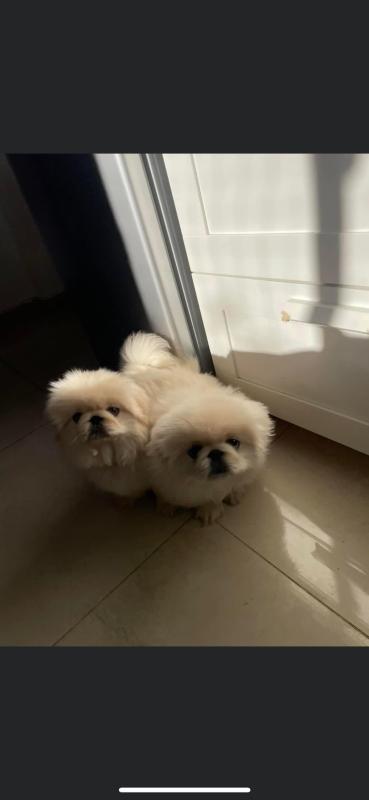 2 גורי פקינז "ראש אריה" לבנים, זכרים, בני ארבעה חודשים. נוחים מאוד, אוהבים ילדים ומסתדרים איתם מעולה. כלבים מתוקים. גמישים במחיר לרציניים בלבד