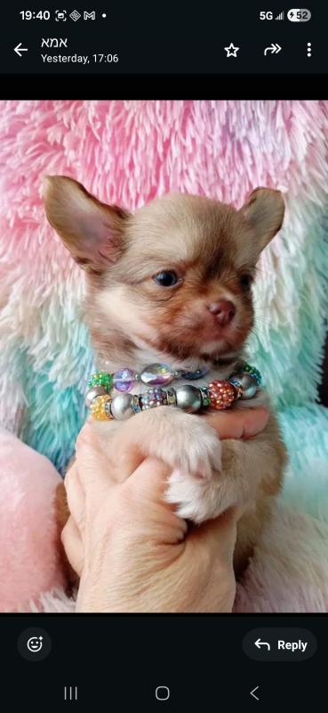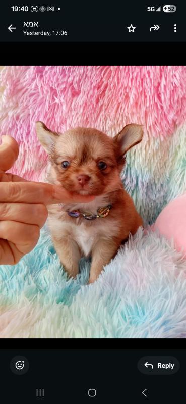 Длинношерстные мальчики чихуахуа ищут новый дом, с ветпаспортом, прививками по возрасту, приучены к пеленке и сухому корму. Родители здесь же, цена 3800шגורי ציוואווה בני חודשיים מוכנים לבית חדש. חיסון, טילוע, פינכס וטרינרי. ההורים במקום. מחיר 3800 ש"ח