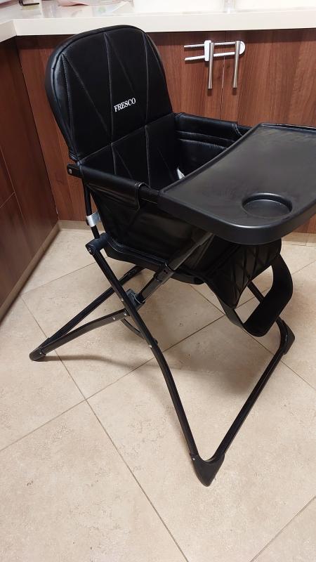 כיסא אוכל לילדים של חברת FRESCO מעור צבע שחור קל מאודד לניקוי ומתקפל בצורה קלה ומהירה!במצב כחדש לגמרי!! כיסא אוכל מעור שחור FRESCO