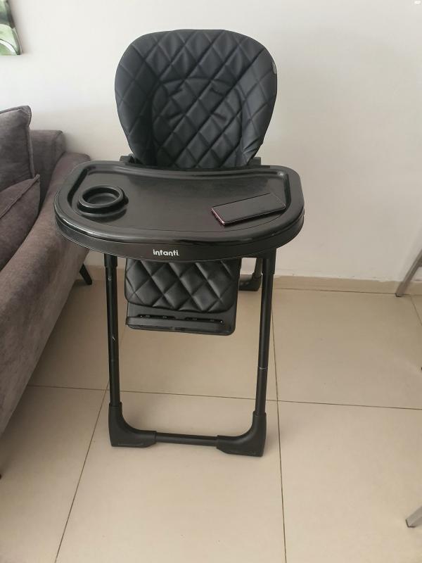 כיסא אוכל לילד שחור עם ריפוד שחור מעור ניתן לפירוק לכביסה במצב חדש נקנה ב500 שח כיסא אוכל לילד במצב חדש