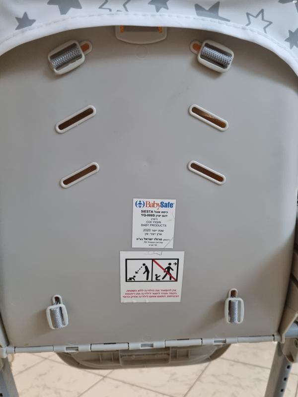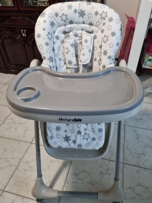 כיסא אוכל של חברת בייבי סייף ממש כמו חדש ונקי ללא כתמים. 2 מגשים מתקפל ונייד. היה בשימוש מועט מאוד ( הכיסא בבית של סבתא שומש רק כששמרה על הנכד) כיסא אוכל במצב חדש