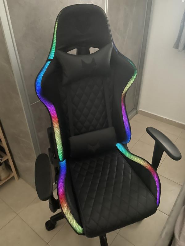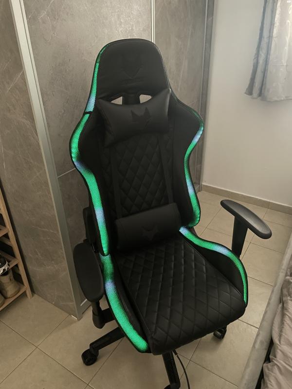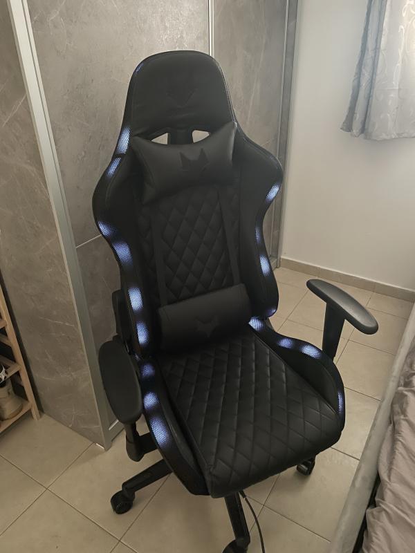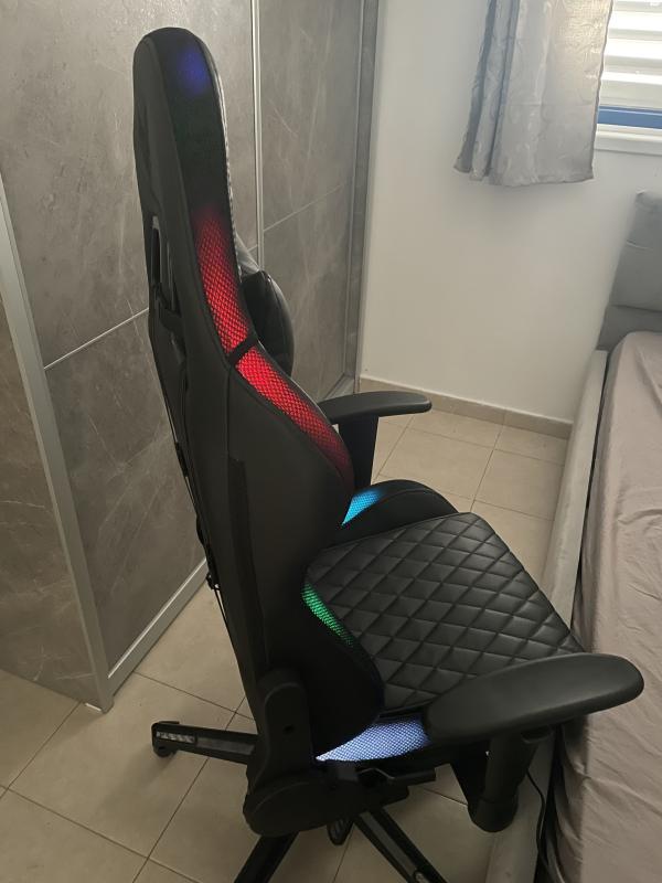 כיסא גיימינג מטורף משולב לדים + שלט לשליטה של האורות.נקנה במחיר של 850 ש״ח ב 27.1.22הכיסא במצב מצויין בקושי היה בשימוש כיסא גיימינג