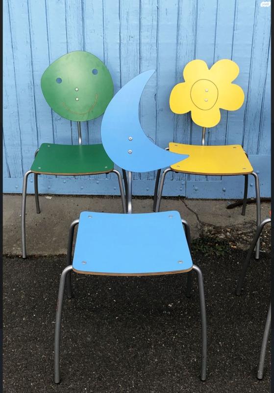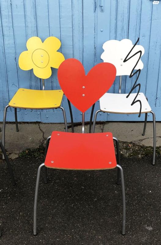 סט של 4 כסאות מיוחדים במינם, של המעצבת: Agatha ruiz de la prada (יבוא מספרד). מידות: גובה מושב: 45.5 סמ, רוחב: 38 סמ, עומק 38, גובה כסא כולל המשענת: 90 סמ.280 לכיסא. יש גם שולחן לבן, מאותו סט, מידות: 70×120 סמ 4 כסאות מיוחדים ויחודיים