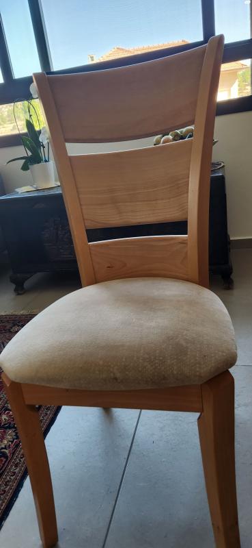 8 כסאות אוכל מעץ בהיר, מרופדים בהיר, נוחים מאד, במצב מעולה. המחיר הוא לכסא אחד. כל 8 הכסאות תהיה הנחה במחיר 8 כסאות פינת אוכל מעץ מרופדים