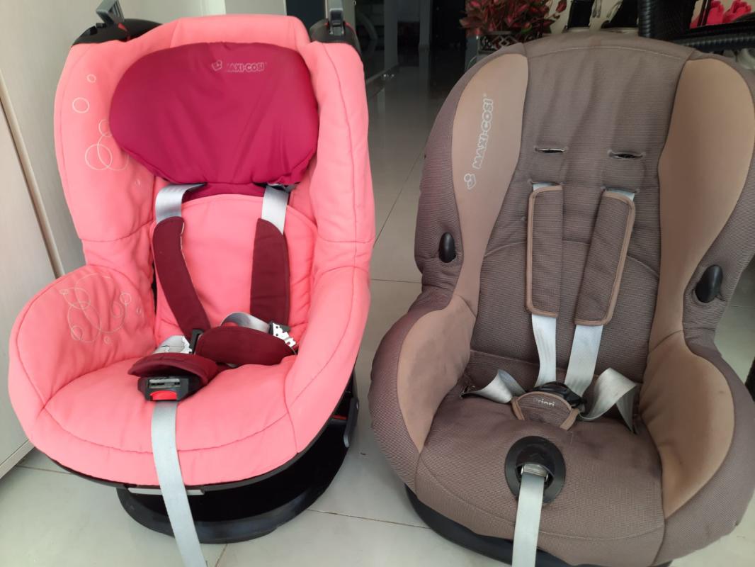 2 כסאות בטיחות מקסי קוזי maxi-cosi ורוד וחום מצב שמור כחדש ריפוד אחרי כביסה נקי ונעים כל כסא 400₪ מכרמיאל