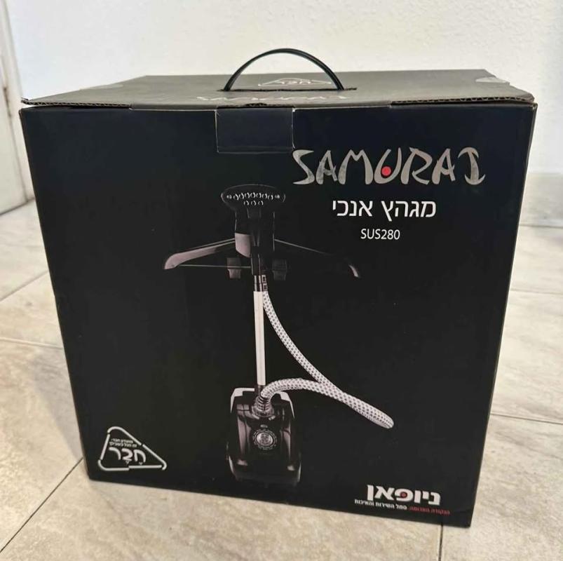 sus 280 דגם מגהץ אדים אנכי- סמוראי של חברת ניופאן. המגהץ חדש לגמרי ארוז כחדש עם הקופסה. לא נפתח ולא נעשה בו שימוש מעולם. נמכר עקב אי שימוש. המגהץ כולל חימום מהיר, לחץ אדים גבוה 32 גרם אדים לדקה, כולל מוט טלסקופי עם קולב לבגדים לגיהוץ אנכי מהיר ולריענון וחיטוי של בדים, קומפקטי ונוח לאחסון, עם גלגלים לניוד נוח. באריזה מגהץ, מיכל מים, מברשת אדים, מברשת לבדים קשים, כפפה. המוצר חדש לגמרי, עדיין באריזה.