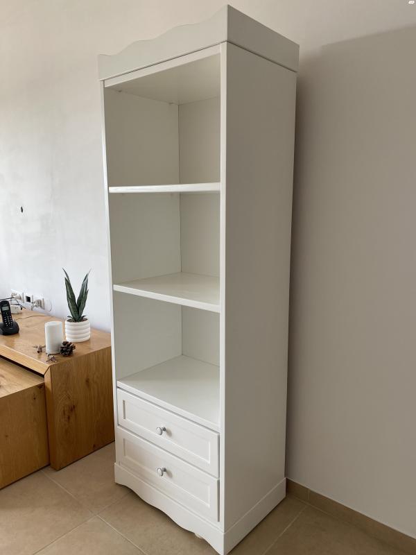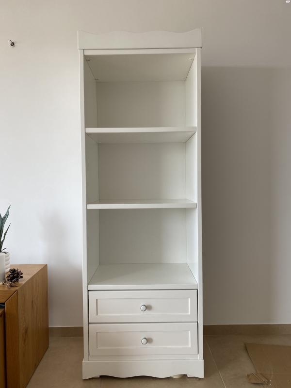 כוננית ספרים למכירה כוננית בצבע לבן של חברת זולה חדרי ילדים , במצב מצויין בעלת שלושה מדפים ושני מגירות . גובה : 1.74רוחב : 61 מחיר :1,000 גמישה במחיר איסוף עצמי מקרית אתא כוננית ספרים
