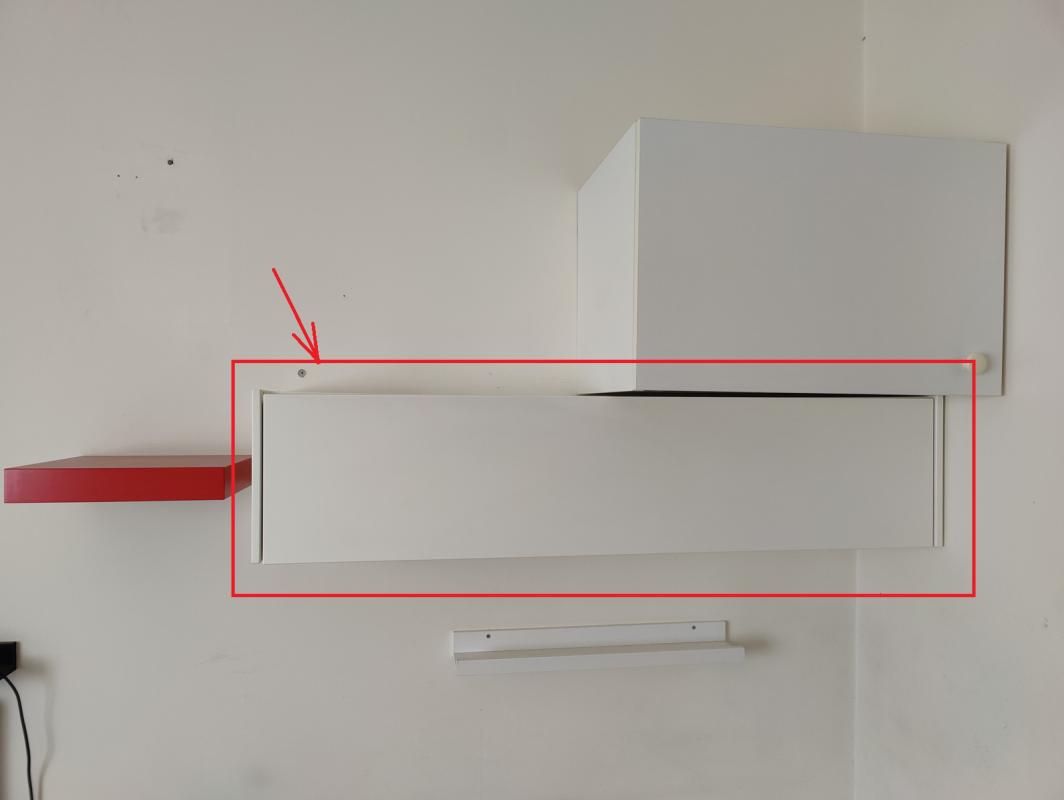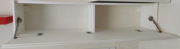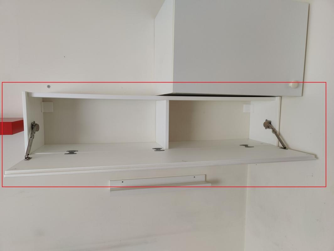 מדף עם דלת ציר עם שני תאים, הדלת נפתחת למטה עם בוכנות, מבית איקאה, בצבע לבן, עשויה מ-MDF, במצב מצוין. מידות: ר' 117 ס''מ, ג' 28 ס''מ, ע' 25 ס''מ. הארונית נמצאת בשכונת גני אביב בלוד אך ניתן להביא אותה לנס ציונה או לרחובות ובתוספת של 10 ש''ח ניתן להביא אותו גם לערים קרובות לרחובות - יבנה, ראשון לציון, באר יעקב, גדרה, מזכרת בתיה ואחרות.