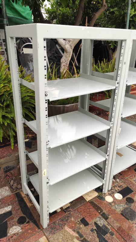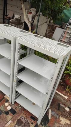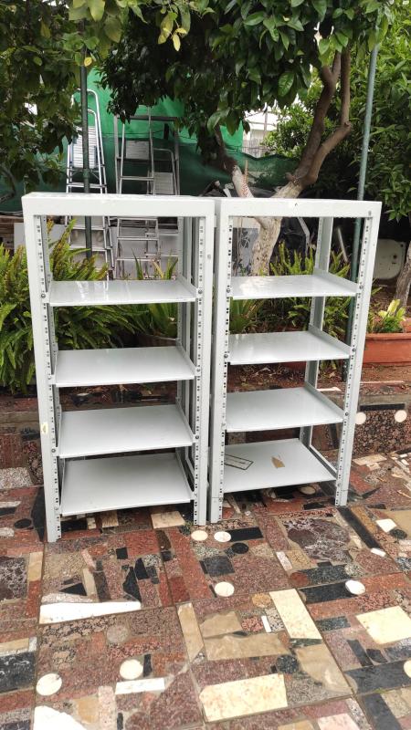 שתי יחידות מדפי מתכת חזקים לאחסון מידות 137*65*45. 150 שח ליחידה בלבד מדפי מתכת חזקים137*65*45