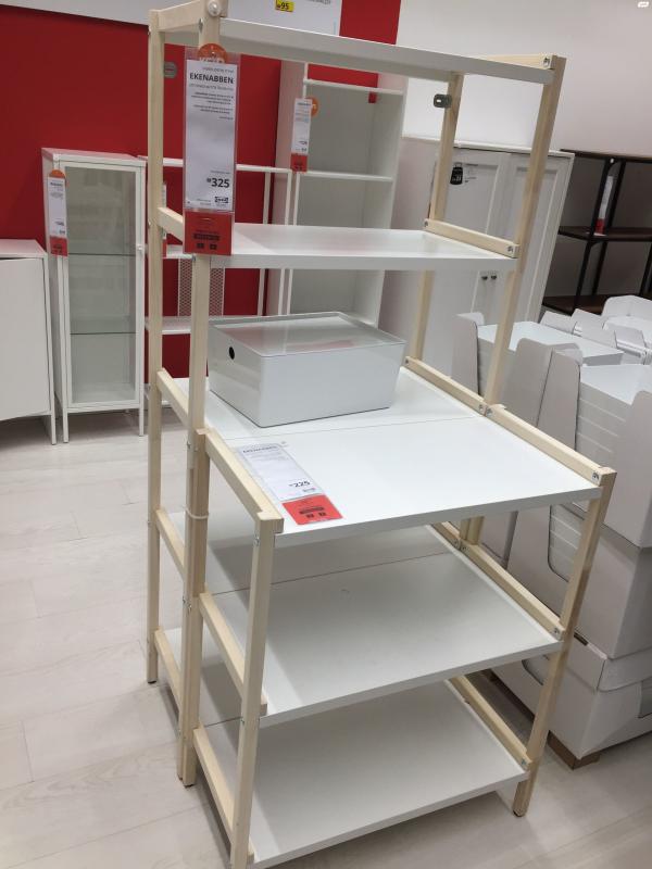 2 x יחידת מדפים גבוהה EKENABBEN – מסגרת עץ צפצפה/מדף לבן. רוחב 70 ס״מ, עומק 34 ס״מ, גובה 154 ס״מ. 165 ש״ח ליחידה או 300 ש״ח לשתי יחידות. 2 x יחידת מדפים נמוכה EKENABBEN – מסגרת עץ צפצפה/מדף לבן. רוחב 70 ס״מ, עומק 34 ס״מ, גובה 86 ס״מ – 115 ש״ח ליחידה או 200 לשתי יחידות יחידת מדפים פתוחה EKENABBEN