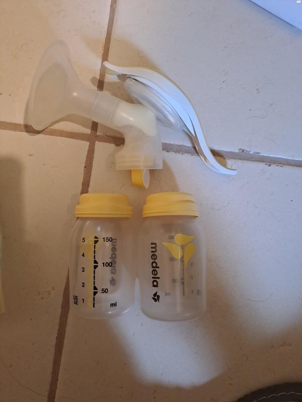 משאבת חלב ידנית של מדלה בנוסף 2 בקבוקי איחסון חלבשומש אולי פעמים משאבת חלב ידנית של מדלה