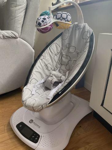 נדנדת התינוק הרב-תנועתית MamaRoo של 4moms ניתנת להתאמה אישית לכל צורך ומצב רוח של התינוק. שלבו והתאימו 5 תנועות בהשראת הורים (נסיעה ברכב, קנגורו, נדנדת עץ, נדנוד ונפנוף), 5 מהירויות ו-4 מנגינות מובנות כדי לבדר את הקטנטן שלכם ולתת לידיים שלו הפסקה נחוצה.מצאו את התנועה המתאימה לכם ביותר: תנועות שונות למצבי רוח שונים. בין אם התינוק שמח, עצבני או משהו באמצע, תכונת "מצא את ה-Roo שלך" שנמצאת בלעדית באפליקציית 4moms מורידה את הניחושים ביצירת מעבר חלק מהזרועות שלכם לנדנדה שלו. פשוט הזיזו כפי שהייתם עושים עם התינוק שלכם תוך כדי החזקת הטלפון שלכם, והאפליקציה תגיד לכם אילו שילובים של תנועות ומהירויות של Roo דומים ביותר לשלכם.שלט רחוק: נדנדת התינוק MamaRoo מופעלת באמצעות Bluetooth כך שתוכלו להתאים בקלות תנועה, מהירות או צלילים מוגדרים מראש באמצעות אפליקציית 4moms. תוכלו גם להזרים את המוזיקה האהובה עליכם כדי לשמור על נוחות התינוק בזמן שהוא מתנדנד ומתנדנד ב-MamaRoo.תואם לבית חכם: נהנים מרגע של חופש ידיים אמיתי? שליטה קולית עם Amazon Alexa ו-Google Home בזמן שאתם שוטפים בקבוקים, מחליפים כביסה או מ