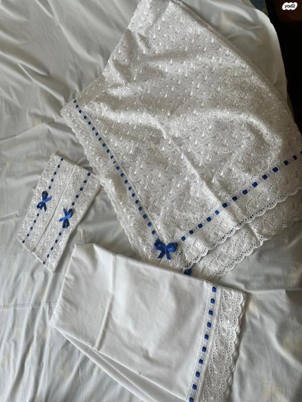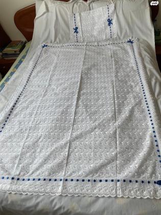 ציפה תחרה לבנה פלוס ציפה לכרית לתינוק, סגירה עם כפתרים , מידה מטר וחצי אורך על מטר רוחב, כרית 52ס״מ על 35 ס״מחדש באריזה ציפה תחרה לבנה