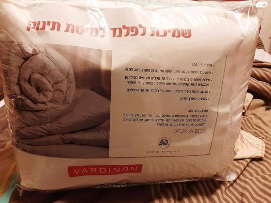 שמיכת פוך ''לפלנד'' למיטת תינוק של ורדינון. מידות 150x100 ס''מ. כמעט ולא נעשה בה שימוש. איסוף משכונת בית הכרם ירושלים שמיכת פוך לתינוק