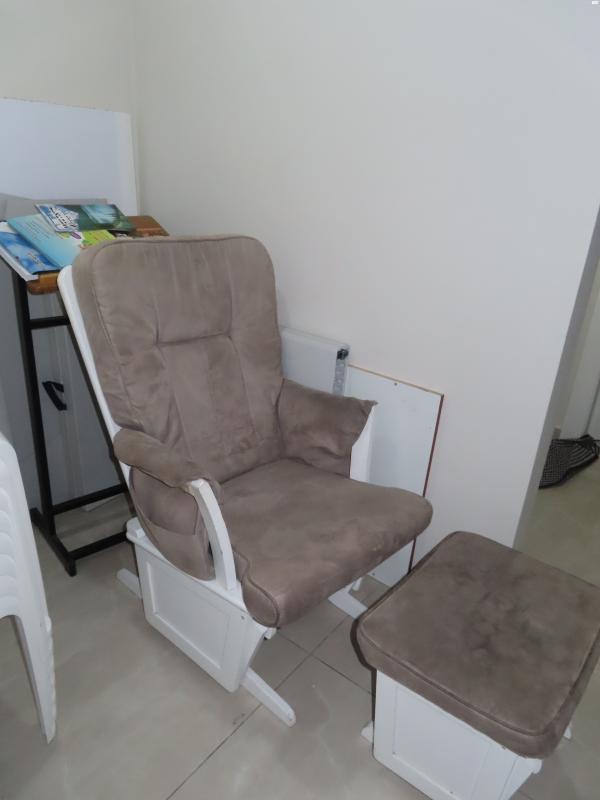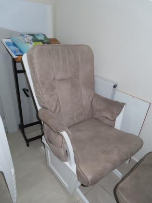 כורסת הנקה בצבע אפור, בסיס עץ בצבע לבן.ניתן לשלוף ולכבס.עושה את עבודתה מצויין כורסת הנקה- מתנדנדת