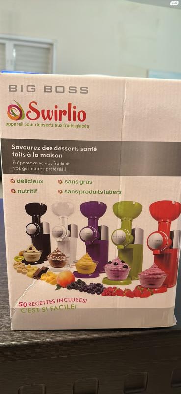 מכשיר Swirlio Big Boss להכנת פרוזן יוגורט, גלידה וסורבה.המכשיר חדש לחלוטין (בחיים לא נעשה בו שימוש) ונמכר עקב חוסר שימוש.איסוף מרמת גן מכשיר Swirlio Big Boss חדש