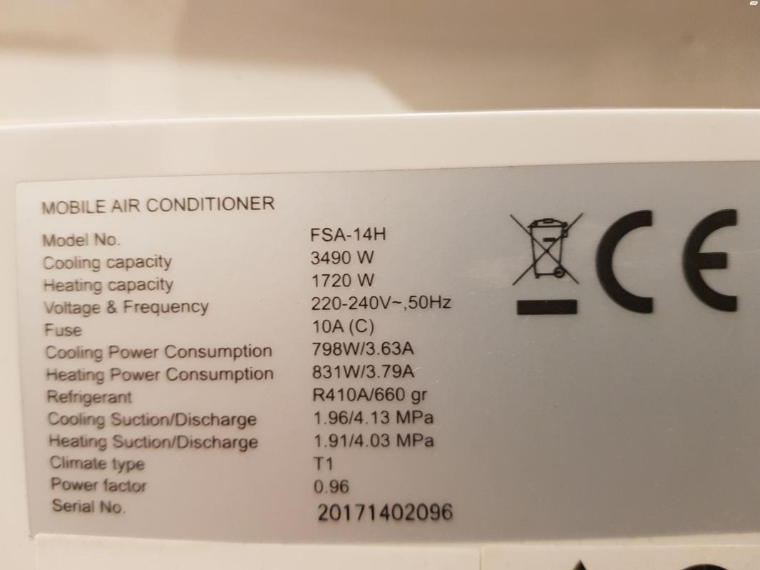 מזגן נייד, פמילי קירור + חימום FSA -14H Familyדירוג אנרגטי A הספק נצרך 798 WATTתפוקת קירור 11,911 BTU חימום 5870 BTUמידות: גובה 82 ס"מ , עומק 44 ס"מ ,רוחב 42 ס"מ.מערכת סננים כפולה כוללת סנן פחם להשבחת האוויר מקרר מצוין חללים עד 12 מ"רנמכר עקב מעבר דירה, במצב מצוין! מזגן נייד Family FSA 14H כחדש