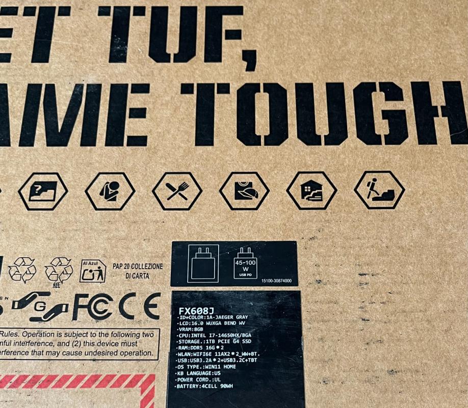 מוכר את ה-Asus TUF F16 FX608J החדש לגמרי בגודל 16 אינץ', i7-14650HX/BGA 2.2GHz, זיכרון RAM בנפח 32GB, כונן SSD בנפח 1TB, GeForce RTX 5060.חדש, בקופסה.