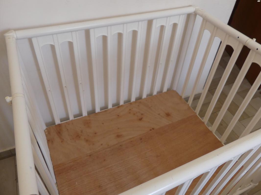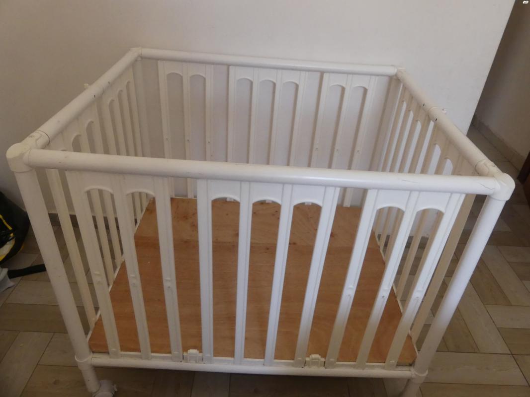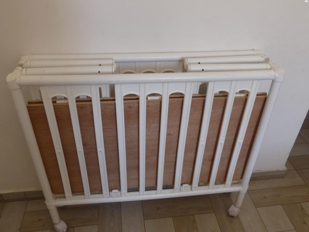 לול בצבע לבן מפלסטיק ללא מזרון, בסיס מעץ, נפתח ומתקפל בקלות(כפי שרואים בתמונה) גלגלים עם מעצור מידות: 95 ס"מ * 78 ס"מ איסוף מבני ברק, לא בשבת לול לבן פלסטיק ללא מזרון