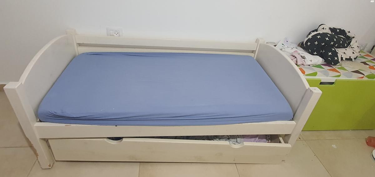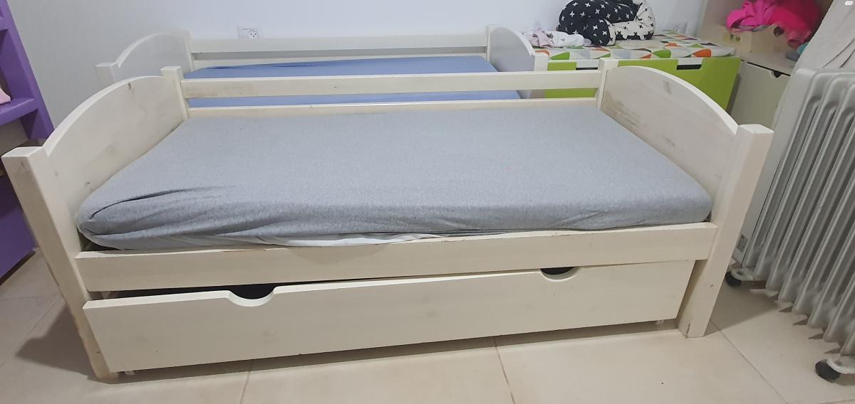 2 מיטות מעבר של חברת עצמלה. כולל מזרן , מעקה, ארגז מצעים . המזרון תמיד היה עם מגן מזרן וניילון נוסף . כל מיטה חש רגל אחת שהיא משופשפת . רואים בתמונה . המחיר ל 2 המיטות יחד איסוף מקרית אונו 2 מיטות מעבר / מיטת מעבר
