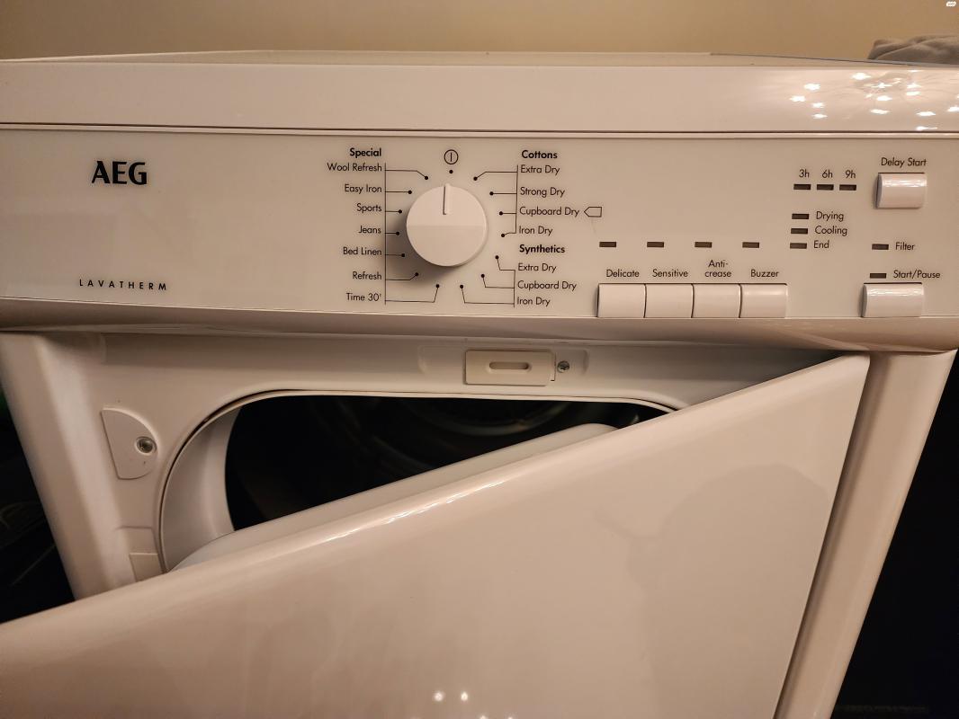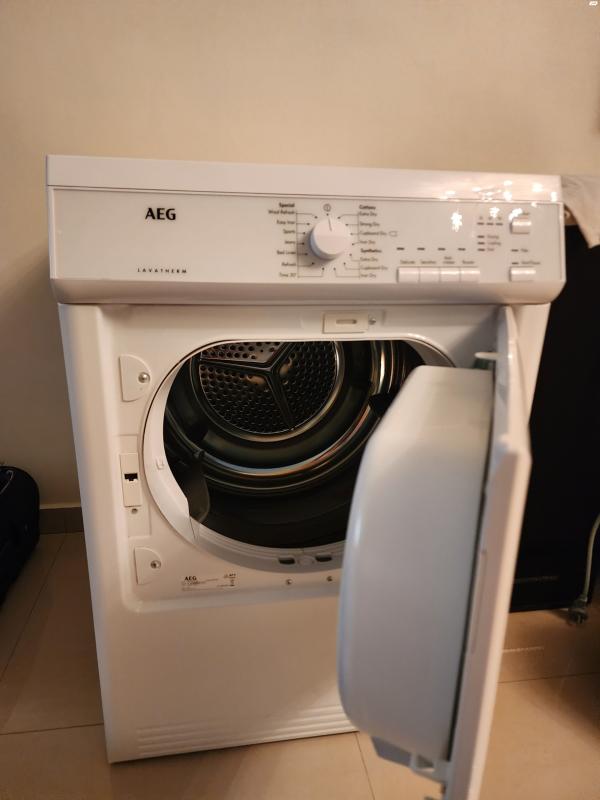 מייבש כביסה בן שנה וחצי עם קבלות .בתקופה האחרונה מייבש ולא מחמם הבאנו טכנאי אמר שצריך תיקון ושיש בעיה בצינור . החלטנו שמתדרגים ומביאים מייבש בלי צינור פליטה . לכול שאלה אני פה לפרטים .גמיש במחיר ! AEG קילו 7 דגם T65170AV