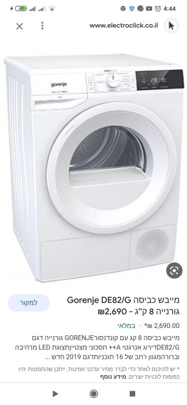 מייבש כביסה Gorenje DE82/G גורנייה 8 ק''ג - מייבש כביסה 8 קג עם קונדנסורGORENJE גורנייה דגם DEחדש לגמריי הגיע אלי אתמול יש קבלת קניה ואחריות מייבש כביסה 8 קילו עם קונדיטור