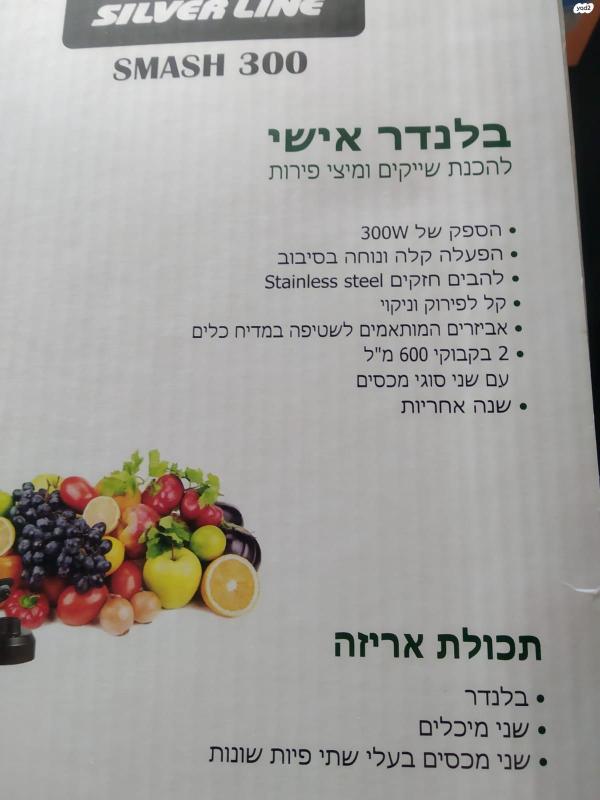 בלנדר אישי SM300 Silver Line 300W.כולל צ'יפסר מתנה.99 שח.מפרט טכני:הספק 300wהפעלה קלה ונוחה בסיבובלהבים חזקים Stainless Steelקל לפירוק וניקוי אביזרים המותאמים לשטיפה במדיח כלים2 מיכלי 600 מ'ל ההופכים לבקבוקי שתייהמכסה עם פיה בולטתמכסה עם ידית נשיאהללא ביספינול A בלנדר שייקר 300W + צ'יפסר מתנה