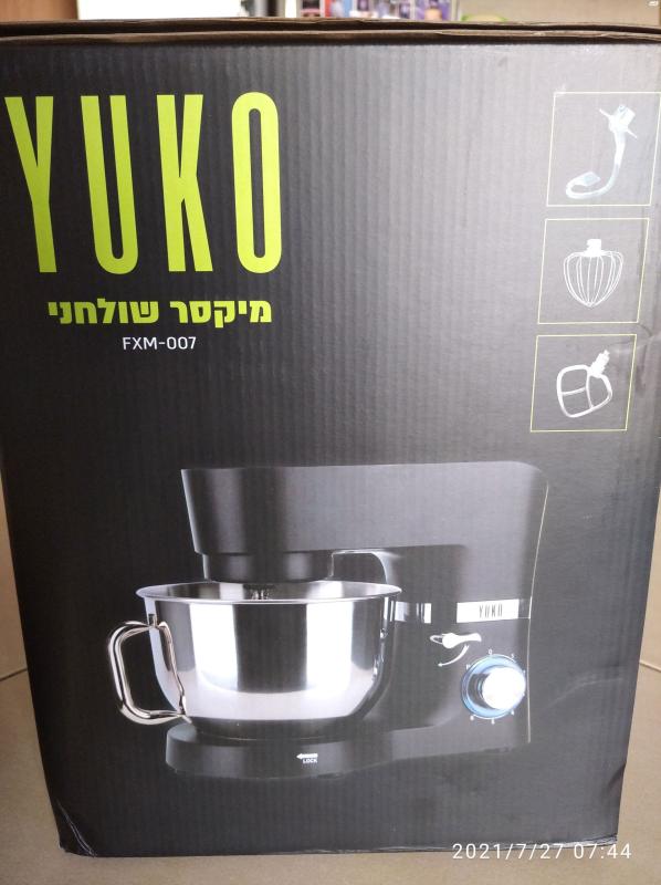 מיקסר שולחני מעוצב, בעל מנוע עוצמתי ושקט במיוחד, הכולל 6 מהירויות ופונקציית PULSE. למיקסר גיר מתכת איכותי ועמיד האידיאלי לפעולת הערבול. המיקסר מצויד עם קערת נירוסטה בקיבולת 5.5 ליטר עם ידית, וו לישת בצק מאלומיניום, וו גיטרה מאלומיניום ומקצף נירוסטה. הספק1100W: חדש נמכר באריזה המקורית מעולם לא היה בשימוש נמכר בגלל שיש אחד כזה בבית מיקסר yuko של ניופאן