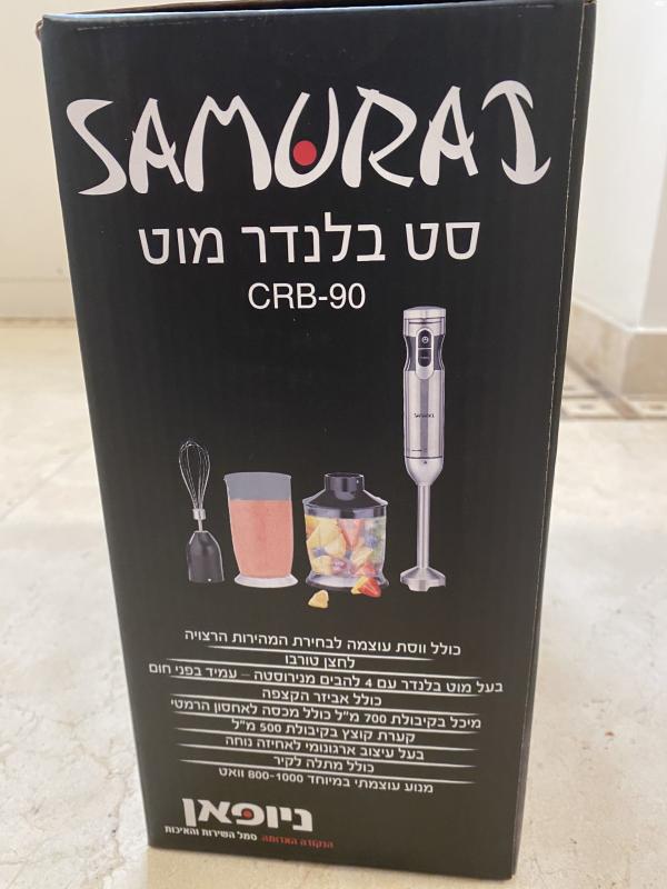 סט בלנדר מוט Samurai CRB-90. חדש באריזה. כולל ווסת עוצמה לבחירת המהירות הרצויה. לחצן טורבו. בעל מוט בלנדר עם 4 להבים מנירוסטה. עמיד בפני חום. כולל אביזר הקצפה. מיכל בקיבולת 700 מ״ל כולל מכסה לאחסון הרמטי. קערת קוצץ בקיבולת 500 מ״ל. בעל עיצוב ארגונומי לאחיזה נוחה. כולל מתלה לקיר. מנוע עוצמתי 800-1000 וואט סט בלנדר מוט Samurai CRB-90