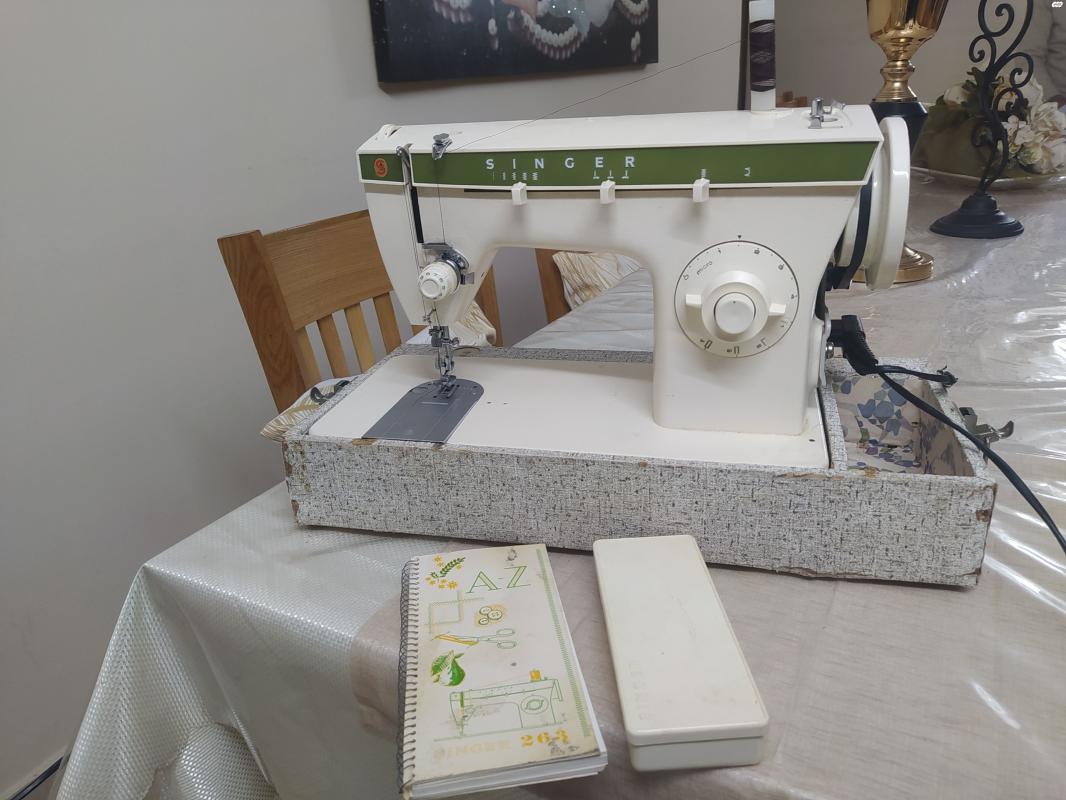 מכונת תפירה של זינגר עובדת תקינה עם ספר הוראות וקופסה עם חלקים. מכונה ניראת חדשה האריזה קצת ישנה. מטופלת ושקטה. קומת קרקע, לא בשבת מכונת תפירה זינגר