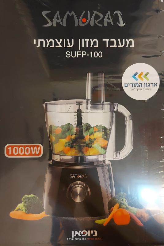 מעבד מזון עוצמתי SAMURAI SUFP-100 חדש באריזה שלא נפתחה. 1000W. להב נירוסטה לקיצוץ מזון, להב ללישת בצק, מיכל בנפח 3 ליטר. ווסת עוצמה. כולל חוברת מתכונים. 500 ש"ח. אפשר גם בשבת. אבי מעבד מזון SAMURAI SUFP-100