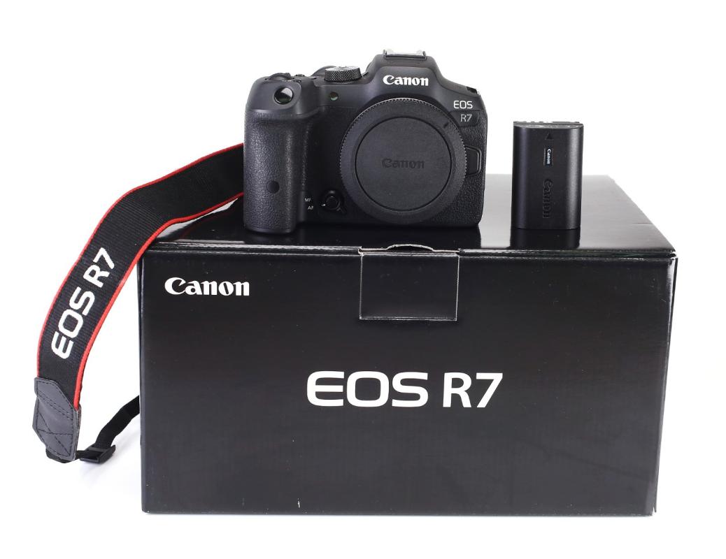 קנון EOS R7 (גוף בלבד), מצלמת ולוגים ללא מראה, איכות תמונה 32.5 מגה פיקסל, וידאו 4K 60p, מעבד DIGIC X, CMOS AF כפול פיקסלים, זיהוי נושא, לאנשי מקצוע וליוצרי תוכן