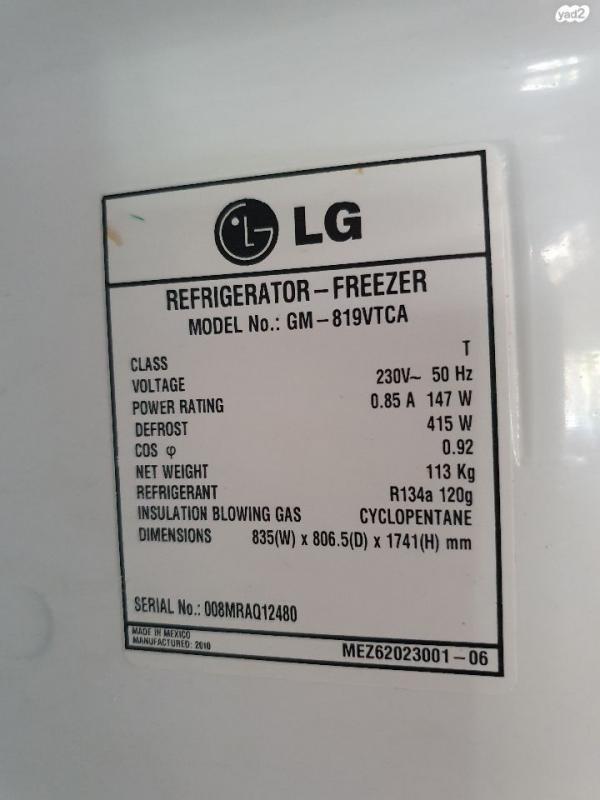 מקרר בנפח 654 ליטר LG דגם GM-819VTCA-Tבמצב כחדשנמכר כי שידרגנו למקרר יותר גדול LG דגם gm-819