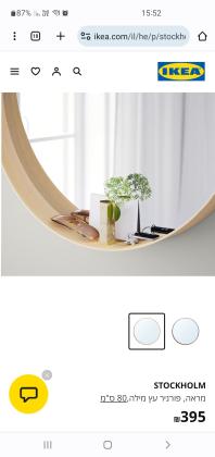 חדשה לגמרי!! מראה עגולה של איקאה, צבע טבעי, קוטר 80 ס"מ, עומק 10 ס"מ היוצר מעין מדף בחלק התחתון. מחיר באיקאה 395 ש"ח, נמכרת ב-200 ש"ח מראה עגולה 80 ס"מ של איקאה