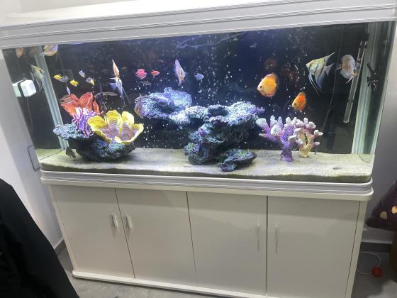 למביני עניין בלבד. נמכר עקב מעבר דירה. מכיל 400 ליטר, רוחב: 1.5, עומק: 40 גובה: 70 אקווריום נמכר עם השידה אך ללא הדקורציה (יש אפשרות לקניה עם כלל הציוד הנלווה כגון משאבה, פילטרים, נורת UV, גוף חימום, חמצן, משאבת ריקון מים לניקוי, רשת ניקוי, מנקה זכוכית ועוד במחיר מציאה של ₪6000)
