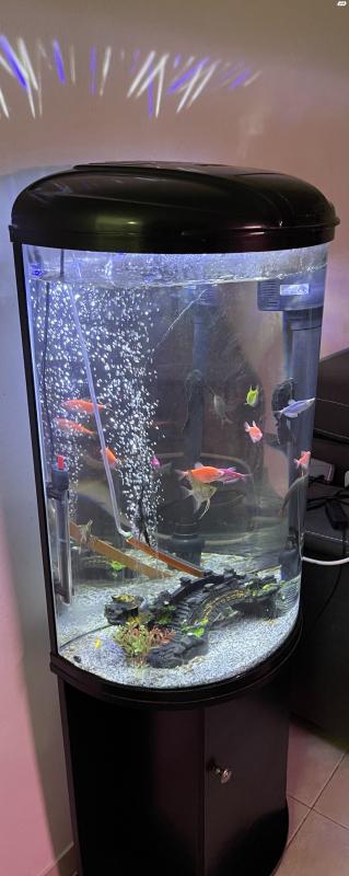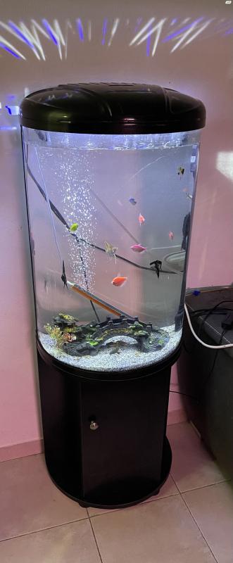 למכירה אקווריום חצי עגול שחור כולל שידה , 80 ליטר , מאוד יפה , כולל דקורציה , חצץ , משאבת חמצן , תאורה מוובנת מתחלפת , טרמוסטט , פילטר פנימי עובד מצוין , אוכל , ציוד נלווה ודגים שבתוכו . רק לשים מים בבית ולהנות