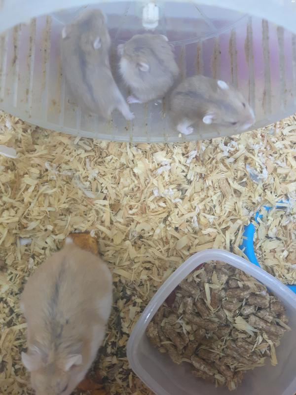 אוגרים סיבירים(הסוג הקטן) אוכלים לבד כבר אמורים לגדול עוד קצת יש תמונה של האמא להמחשת הגודל הסופי מומלץ להתארגן עם כלוב לציוד לפני שמגיעים לא בשבת