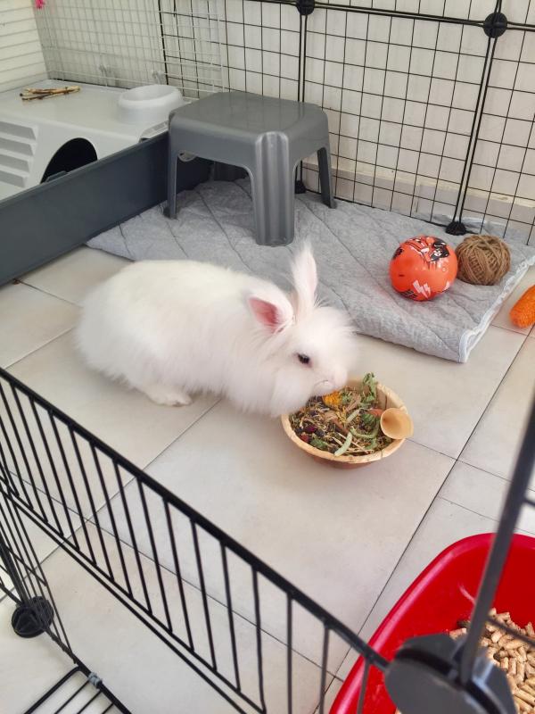 ארנבת אנגורה מהממת ביופיה בת 7 חודשים, ישנה אפשרות למכירת ציוד מלא בתוספת תשלום.