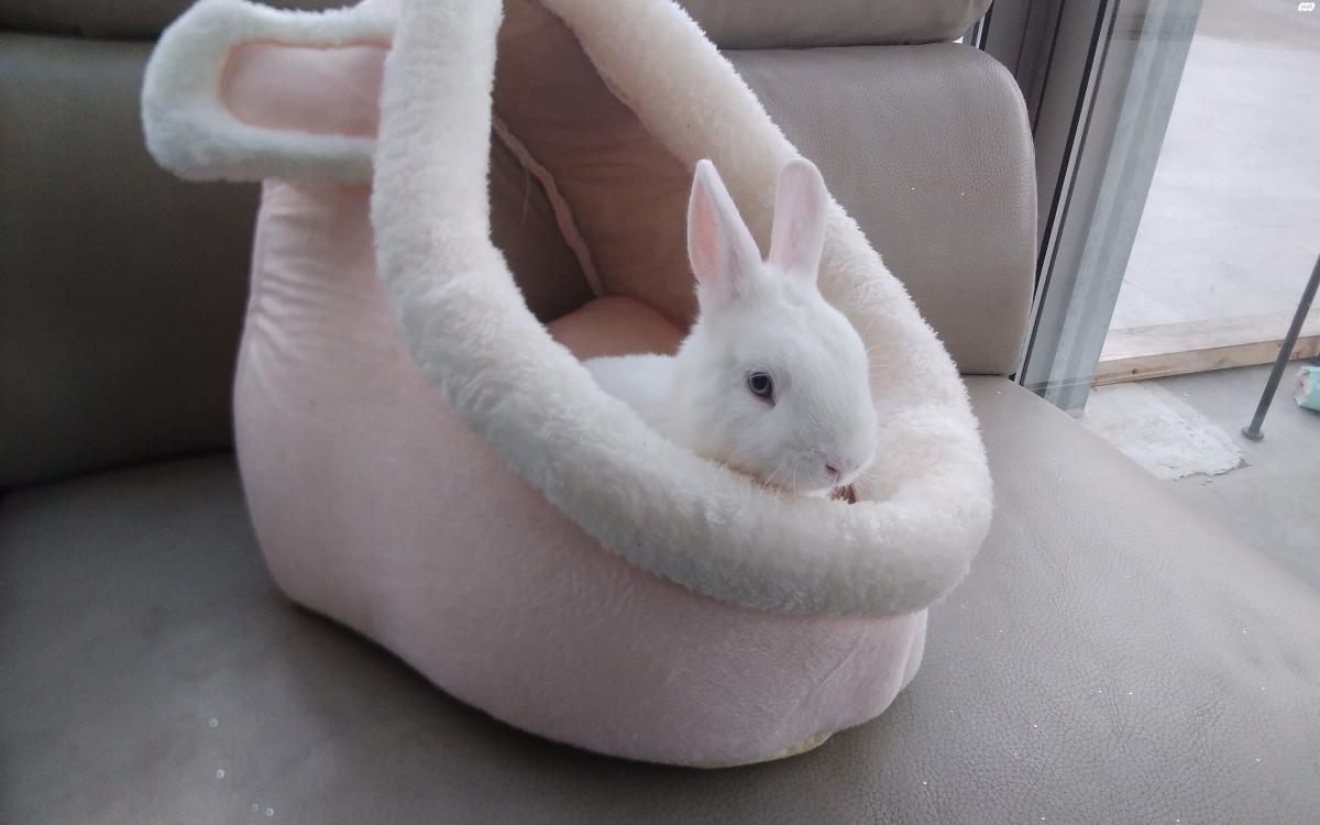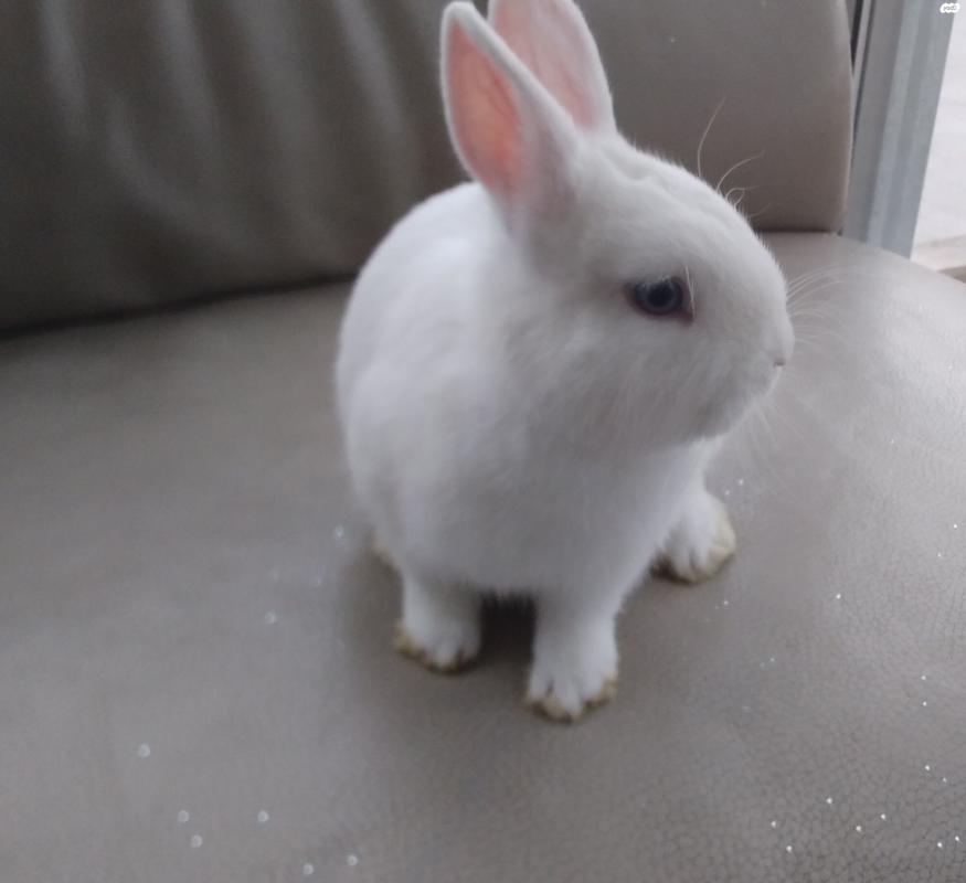 ארנב ננסי הולנדי לבן לגמרי עם עינים תכולות מהמם. בן ארבעה חודשים, מגיע מהארנביה הטובה בארץ, מיוחס מ13 דורות, מחוסן ומטופל ובריא באחריות