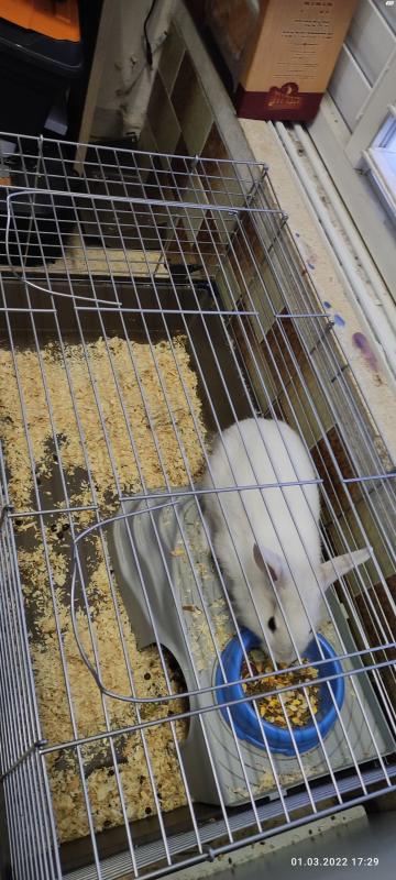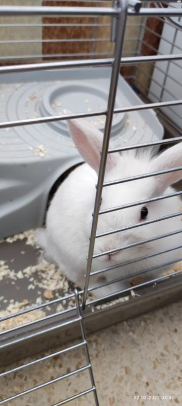 ארנב ננסי ראש אריה,צבע לבן עיניים חומות בן 4וחצי חודשים . רגיל לאנשים ,מסתובב בחופשיות בבית, עושה צריכים במקום אחד ספציפי בכלוב .נמכר עם הכלוב
