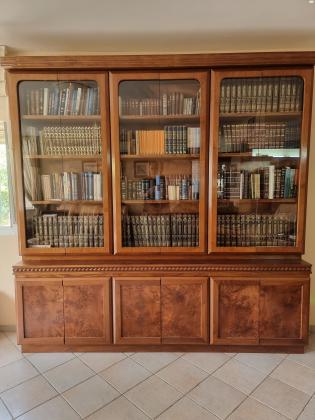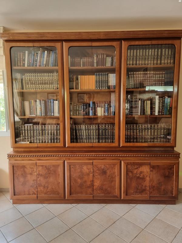 ספריה / ארון ספרים מפואר. 240 ס"מ רוחב ו 240 ס"מ גובה. דלתות זכוכית למניעת אבק. מדפים חזקים וחזית דלתות עם פורניר שורש יוקרתי ארון ספרים /ספריה