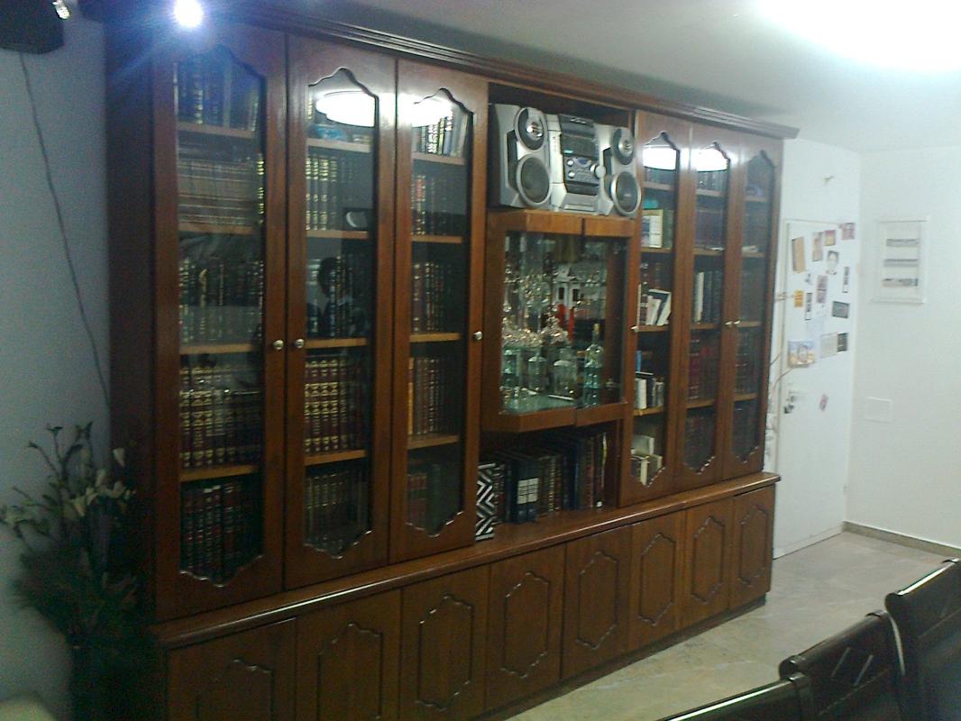 ספריית קודש פורנור יפיפיה שמורה נקנתה ברהיטי הקריה שמורה מאד! 3.2 מטר 8 דלתות זכוכית ספריית קודש 8 דלתות מזכוכית